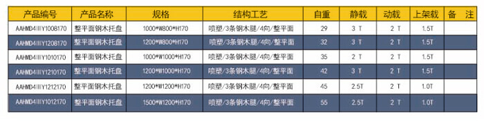 四向三腿——整平面鋼木托盤 技術(shù)參數(shù)說明: 產(chǎn)品編號(hào):AAHMD4ⅢY1512170 產(chǎn)品規(guī)格: 1500*1200*170 防銹工藝: 靜電銀粉沙紋噴塑 產(chǎn)品靜載: 2000KG(均勻載重) 產(chǎn)品動(dòng)載: 2000KG(均勻載重) 產(chǎn)品上架: 1500KG(均勻載重) 主要用途: 倉(cāng)庫(kù)、車間周轉(zhuǎn)、高庫(kù)物流及倉(cāng)儲(chǔ)