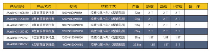 四向三腿——C型盲筋面鋼托盤(pán) 主要用途: 倉(cāng)庫(kù)、車(chē)間周轉(zhuǎn)、物流倉(cāng)儲(chǔ)