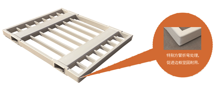 產品特點:★保護存放的編織袋不容易刮破。 ★ 直接在存放物品上碼垛。★H80*200*2.5 或H00*200*2.5大口徑插孔,方便叉車工操作。邊管為80*40*2mm