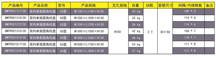 CC型—雙向單面圓角鋼托盤 產品用途:主要為袋裝的軟包裝大批量物品存儲和周轉。改變老式四個尖角焊接,采用圓角工藝,主要防止麻袋在放置時不容易刮破。